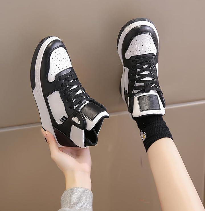 Women's high-top sneakers, cute and stylish, two-tone lace-up, casual and sporty