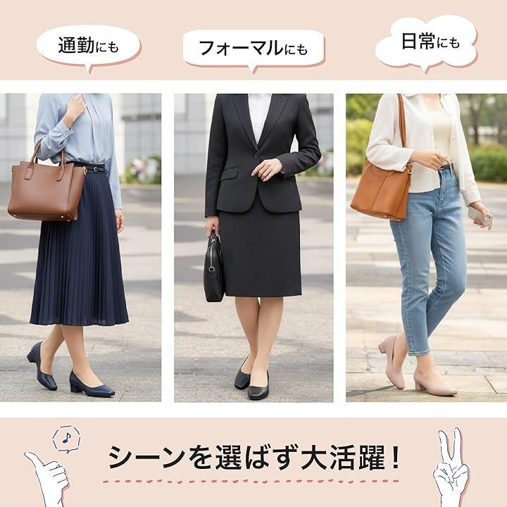 「使用シーン・実用性」 通勤、外出、面接など、必要な場面での着用に向いたパンプスです。