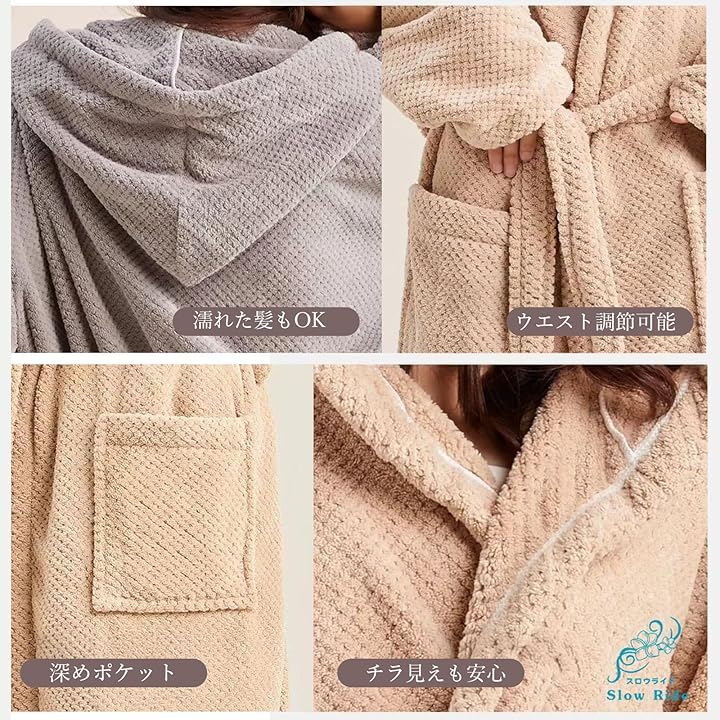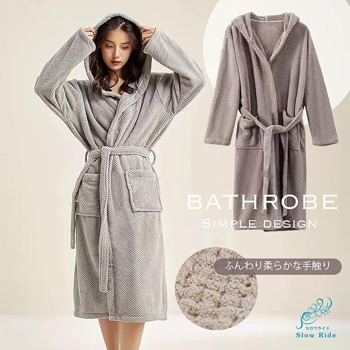 前びらき仕様のシンプルデザインで、毎日のバスタイム後にさっと羽織れる一着。