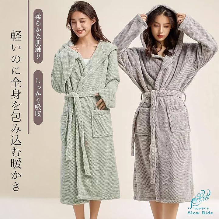 ふんわりと体を包み込むバスローブが、風呂上がりの時間を上品で快適に演出。