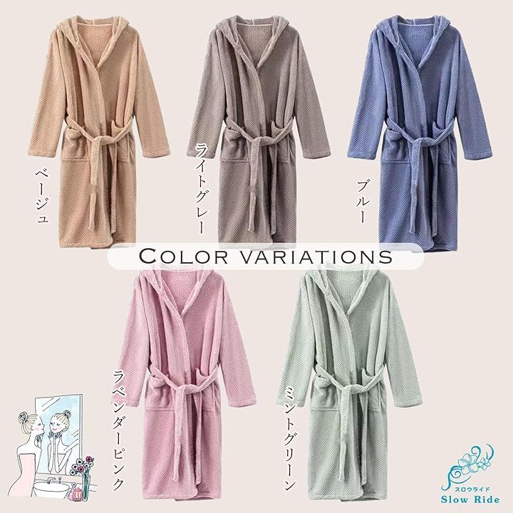 前びらき仕様のシンプルデザインで、毎日のバスタイム後にさっと羽織れる一着。