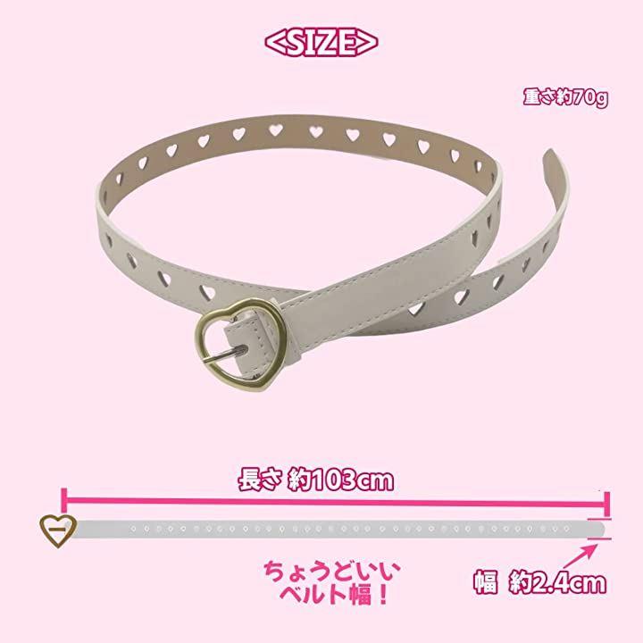 ・ベルト穴も全てハートデザインで控えめ可愛さをアピール。 やや細めのちょうどいいベルト幅がデニムやワンピースのウエストマークに超オススメ。 女性らしいコーディネートのアクセントに大活躍するアイテムです。