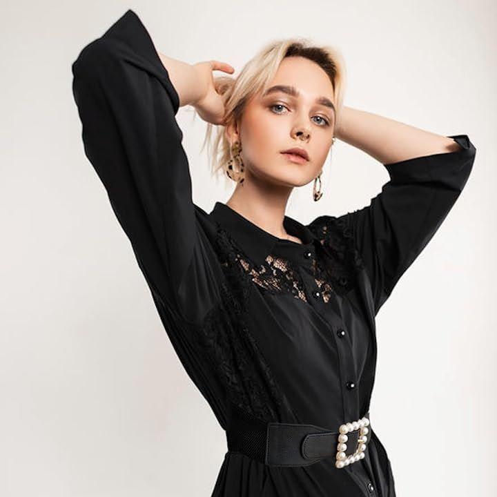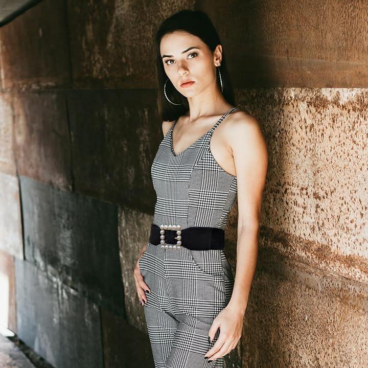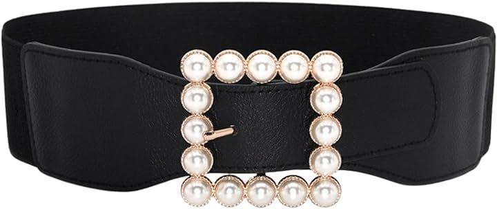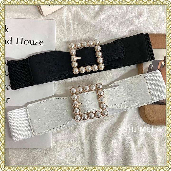 ただ装着するだけで一気におしゃれ度アップ。パールデザインのバックルが上品さをさりげなく演出してくれるゴム仕様のベルトです。