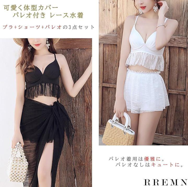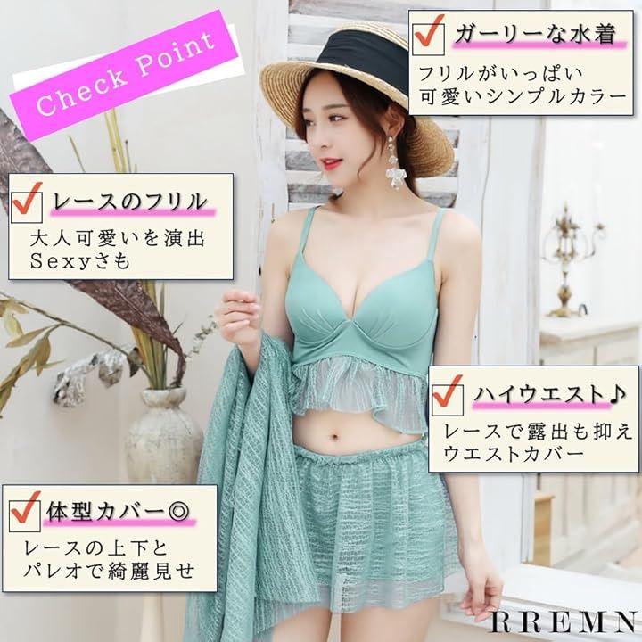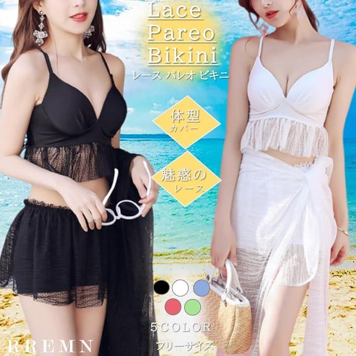 《POINT(1)》高見え する デザイン トップス と ショーツ の レース フリル がとにかく おしゃれ パレオ も自分好みでアレンジ出来て大人可愛く演出できちゃううれしい ビキニ です。