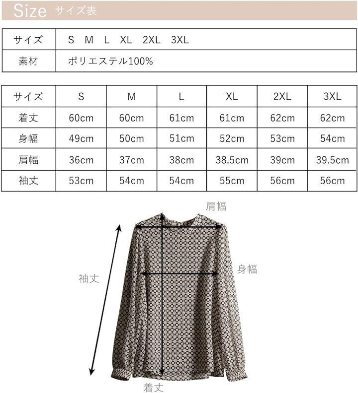 「2XL」着丈62 / 身幅53 / 肩幅39 / 袖丈56