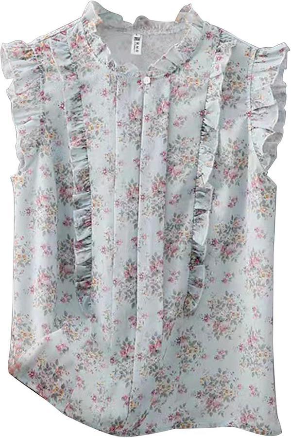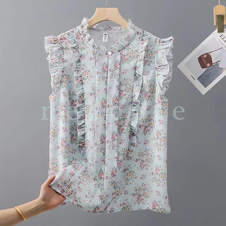 フェミニンなデザインが大人可愛いノースリーブのフリルブラウス。