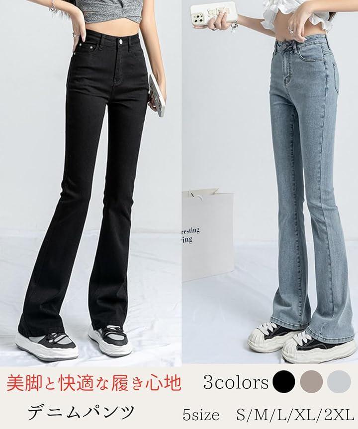 「商品の概要」美脚シルエットが魅力のブーツカットパンツ レディースは、上品なハイウエストデニム仕様で脚長効果抜群。