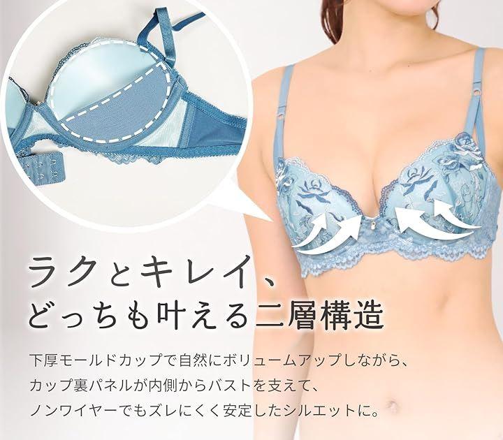 「 特徴 」刺繍 / レース / フラワーブーケ / モールドカップ / ソフトワイヤー / 締め付けフリー / 花柄 / 脇高 / フラワーアーチ / ストラップ調整可 ・ 取り外し可 / パッドポケットなし / 取り外しパッドなし / 下厚カップ約 1cm / ワイヤーあり / サイドボーンあり / 伸縮性あり / 2列x3段ホック / D85,E80,85 F80,85 3列3段ホック