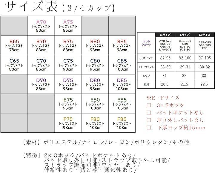 「カラー」ピンク ブルー パープル オレンジ ホワイト「サイズ」A70 A75 B65 B70 B75 B80 B85 C65 C70 C75 C80 C85 D70 D75 D80 D85 E75 E80 E85 F75 F80 F85