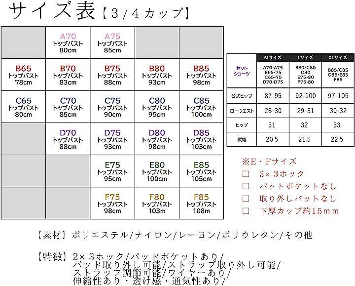 「カラー」ピンク ブルー パープル オレンジ ホワイト「サイズ」A70 A75 B65 B70 B75 B80 B85 C65 C70 C75 C80 C85 D70 D75 D80 D85 E75 E80 E85 F75 F80 F85