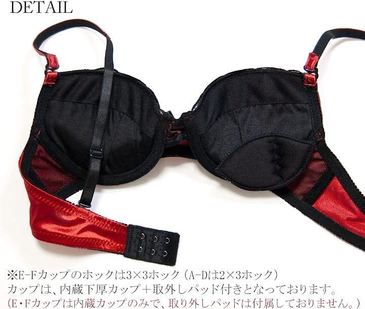・「特徴」ストラップ取り外し可能/パットポケットあり/取り外し可能パット付き/ワイヤーあり/厚手カップ約1cm/伸縮性あり/ショーツフルバック/2x3ホック <EFサイズ>パットポケットなし/取り外しパットなし/厚手カップ1cm/3x3ホック