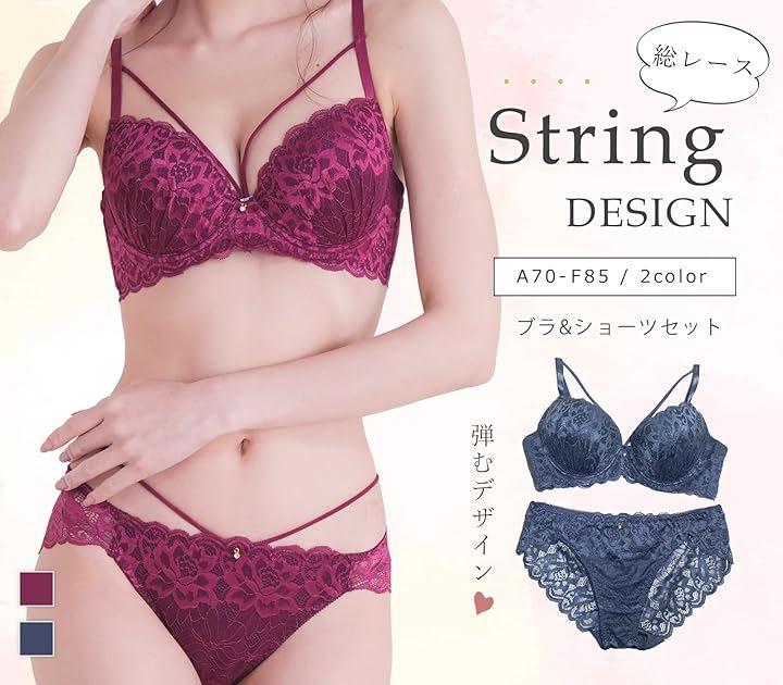「 特徴 」 総レース / 花柄 / ストリング / ストラップ調整可 ・ 取り外し不可 / パッドポケットなし / 取り外しパッドなし / 下厚カップ 約1.5cm / ワイヤー あり / サイドボーン あり / 透け感 ・ 伸縮性あり / 2列x3段ホック / B85. C85. D85. E80 - 85. F80 - 85 3列3段ホック