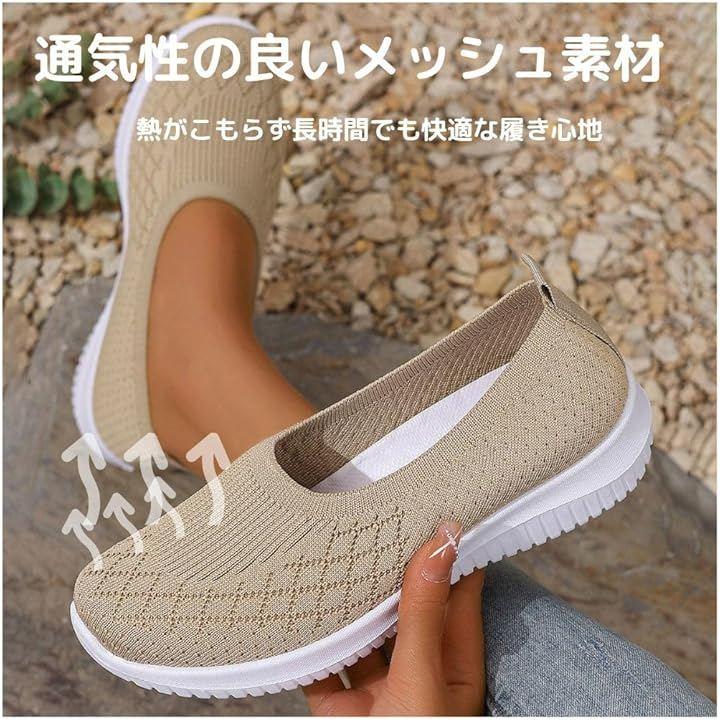 スニーカーとウォーキングシューズの機能を兼ね備えたこのスリッポンスタイルのレディース靴は、軽量で通気性に優れています。