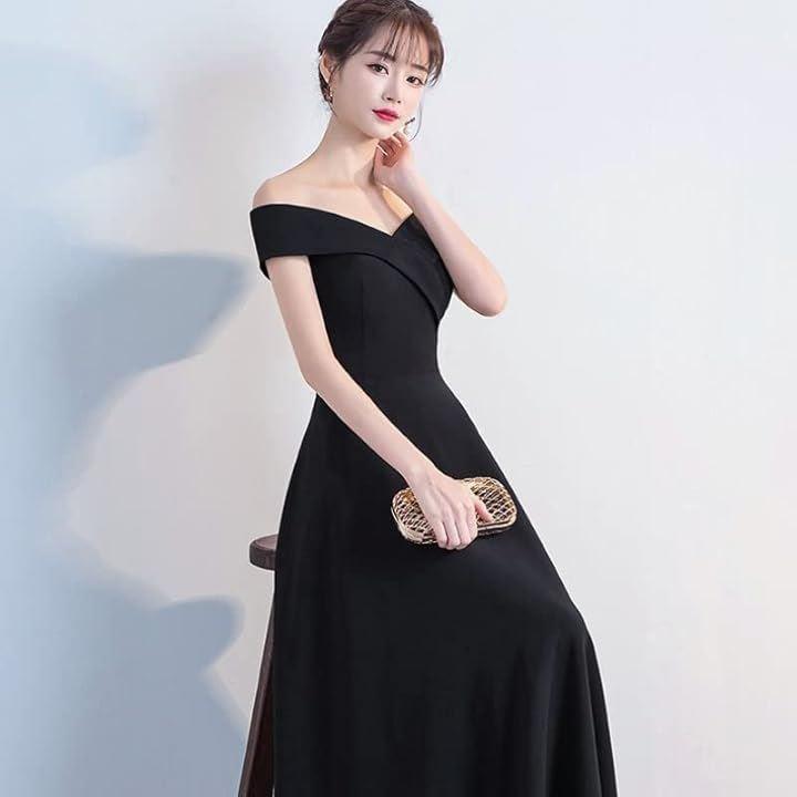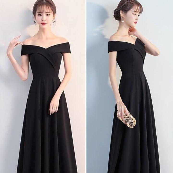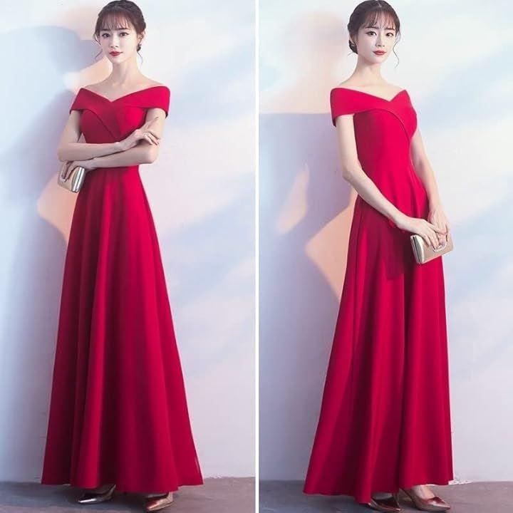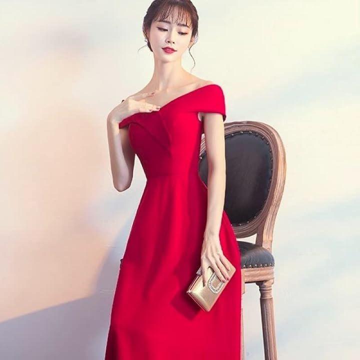 エレガントなカシュクールと優雅に波打つロング丈のスカートが美しい、女優風ワンピース、パーティドレスです。