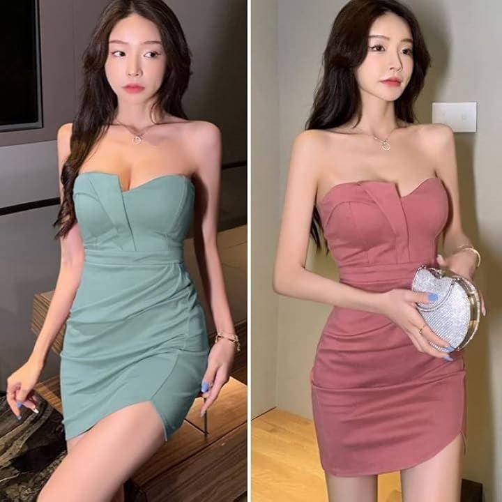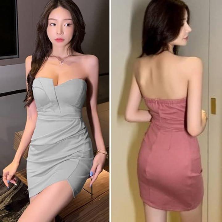 コンパクトなベアトップがセクシーなワンピース、パーティードレスです。