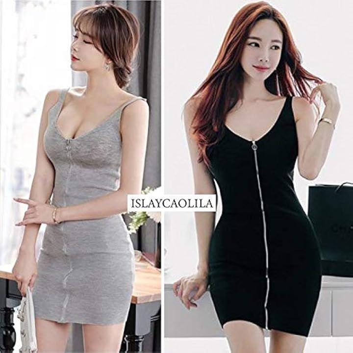 フロントジッパーが上から下までで、セクシーにかわいいベーシックなタイトミニのワンピース、パーティドレスです。