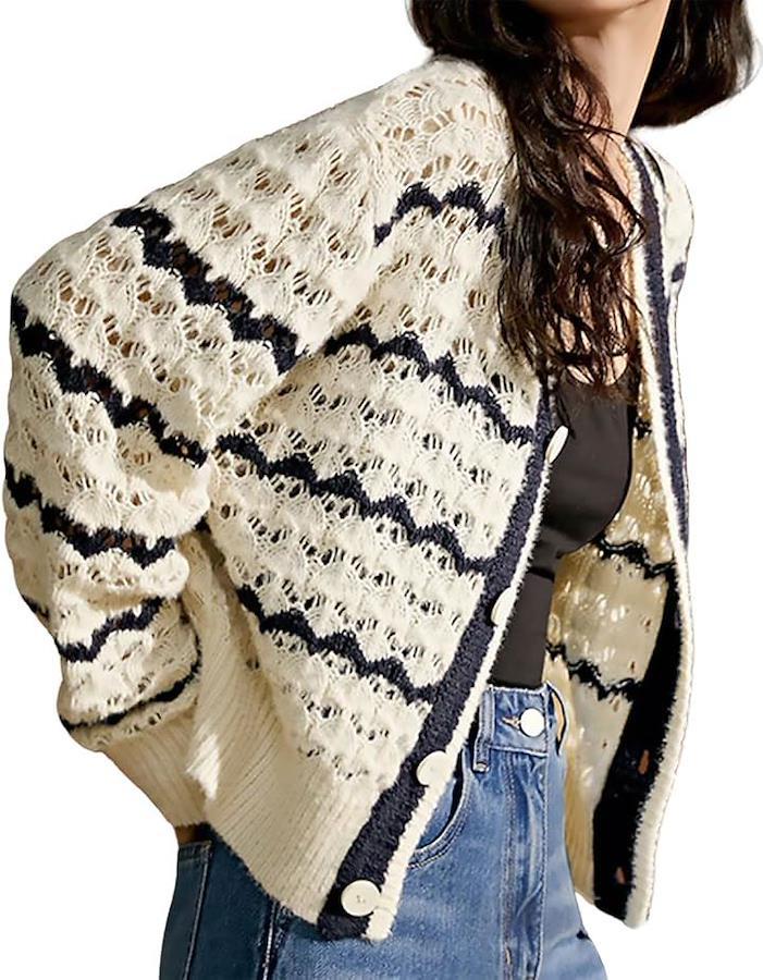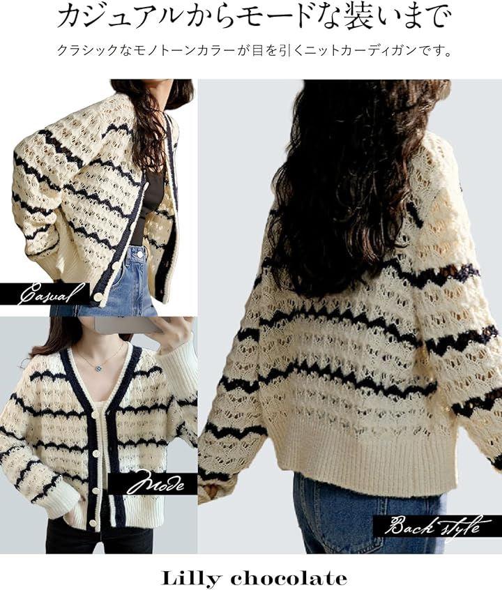 クラシックなモノトーンカラーが目を引くニットカーディガンになります。
