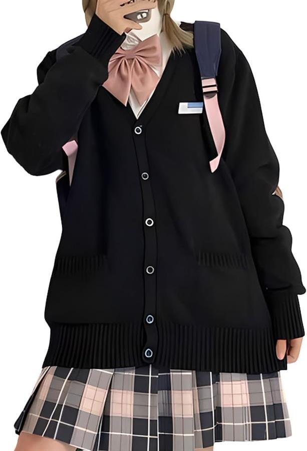 Women's cardigan, sweater, uniform, knit top, knit cardigan, JK, school, casual wear, classic JK uniform, student, junior high school student, high school student, plain, V-neck