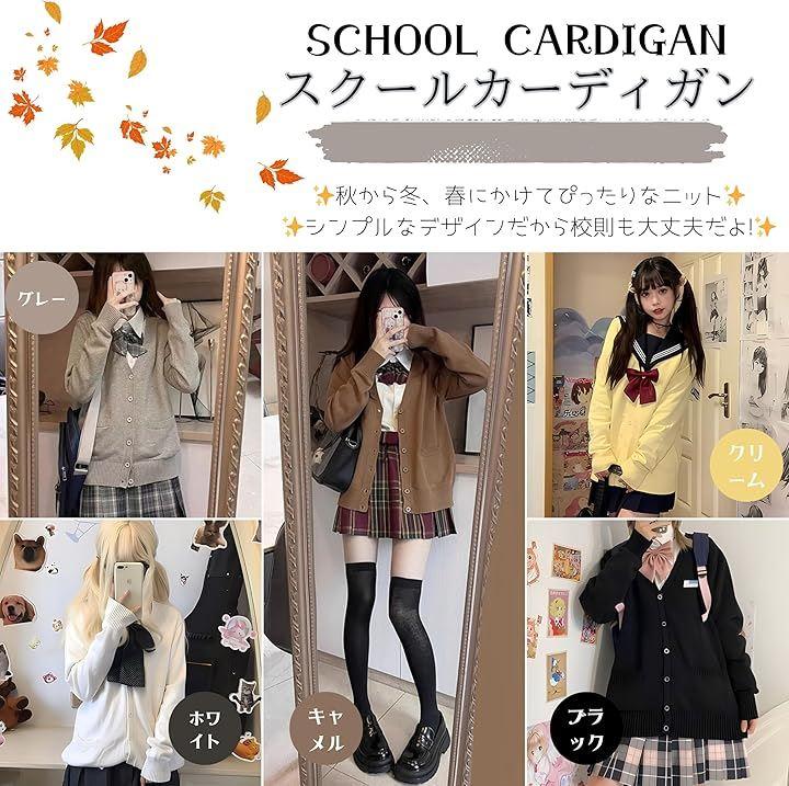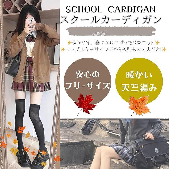 「暖かさをキープする安心感」 寒い季節に欠かせないこのカーディガンは、暖かさをしっかりキープしてくれるから、冬の寒さもへっちゃら。 通気性も抜群だから、教室でも快適に過ごせるよ。 寒い日にはボタンを全部閉めて、ポカポカに。そして、春や秋には軽く羽織るだけでOK。 試験の日に寒さで集中力が切れることもなくなるよ。どんなシーンでも、安心して使えるこのカーディガンで、寒い季節も楽しく過ごそう。
