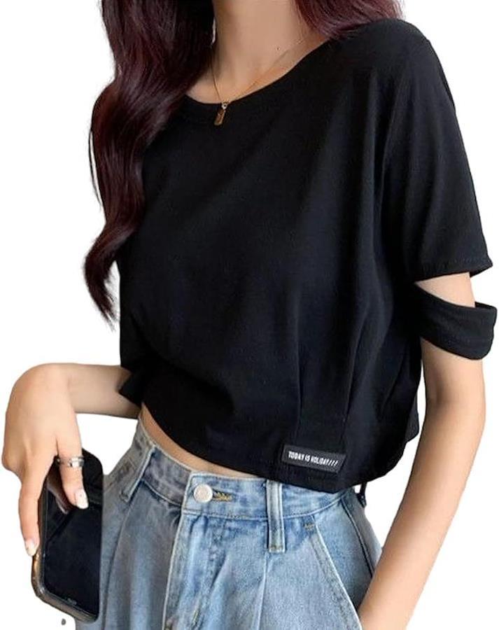 ねじり袖風のディティールが、シンプルなTシャツに華やかさをプラス。
