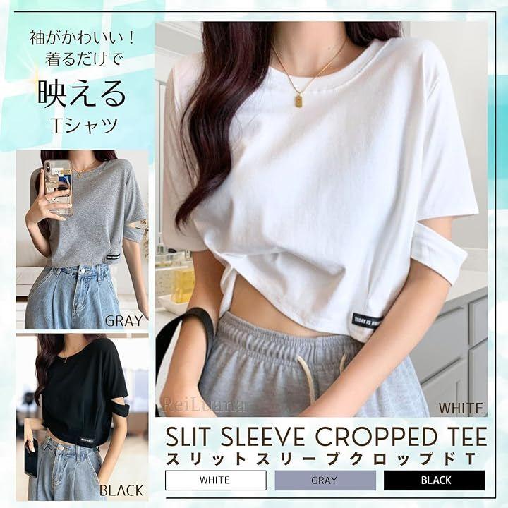 ねじり袖風のディティールが、シンプルなTシャツに華やかさをプラス。