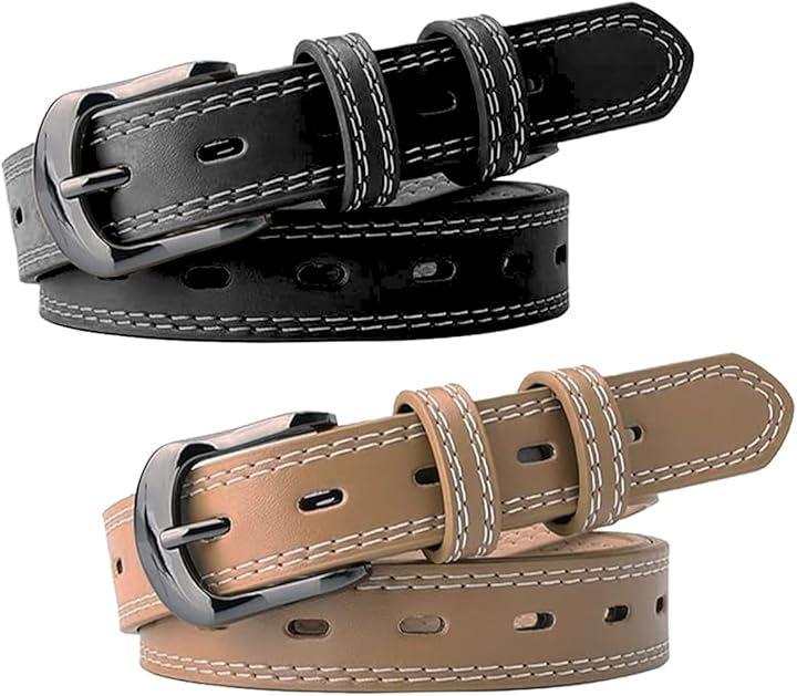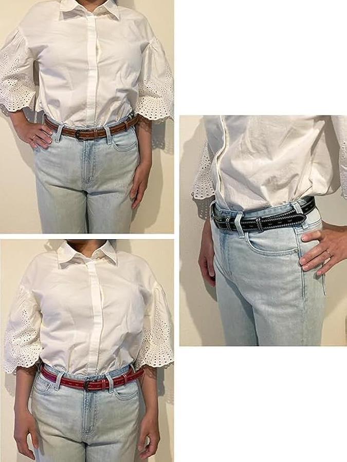 白糸のステッチとベルト穴が映えるレディースベルトです。