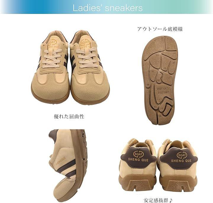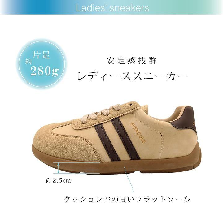 ベーシックな優しいベージュカラーにブラウンのアクセントラインを加え、落ち着いたベージュカラーでカジュアルスタイルにぴったりの1足です。