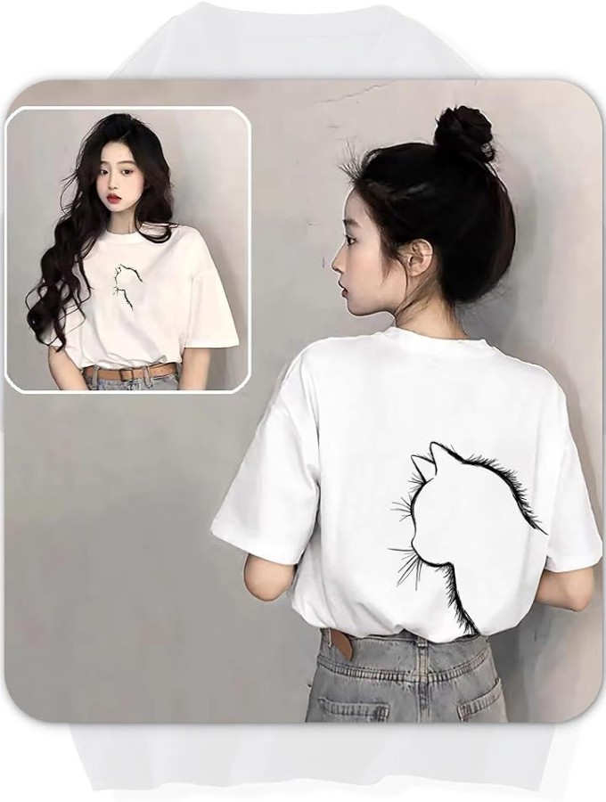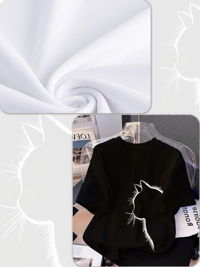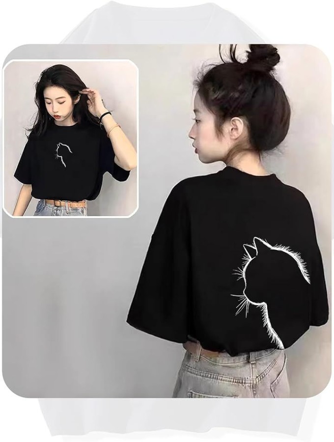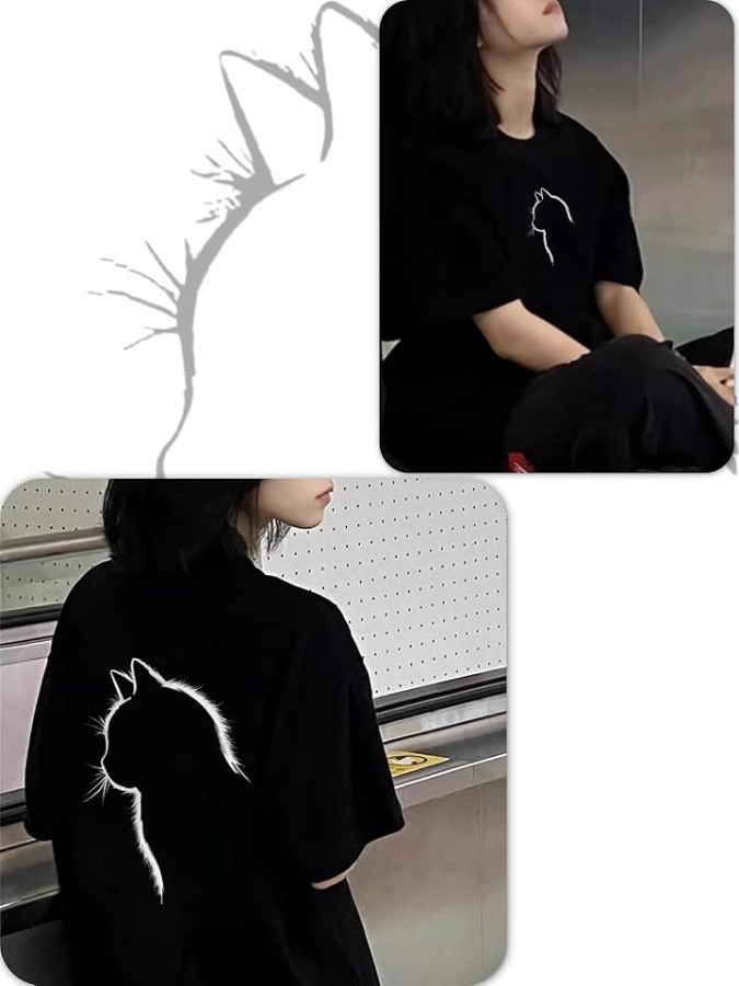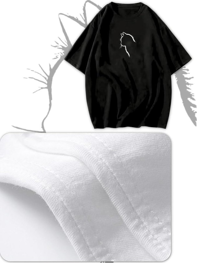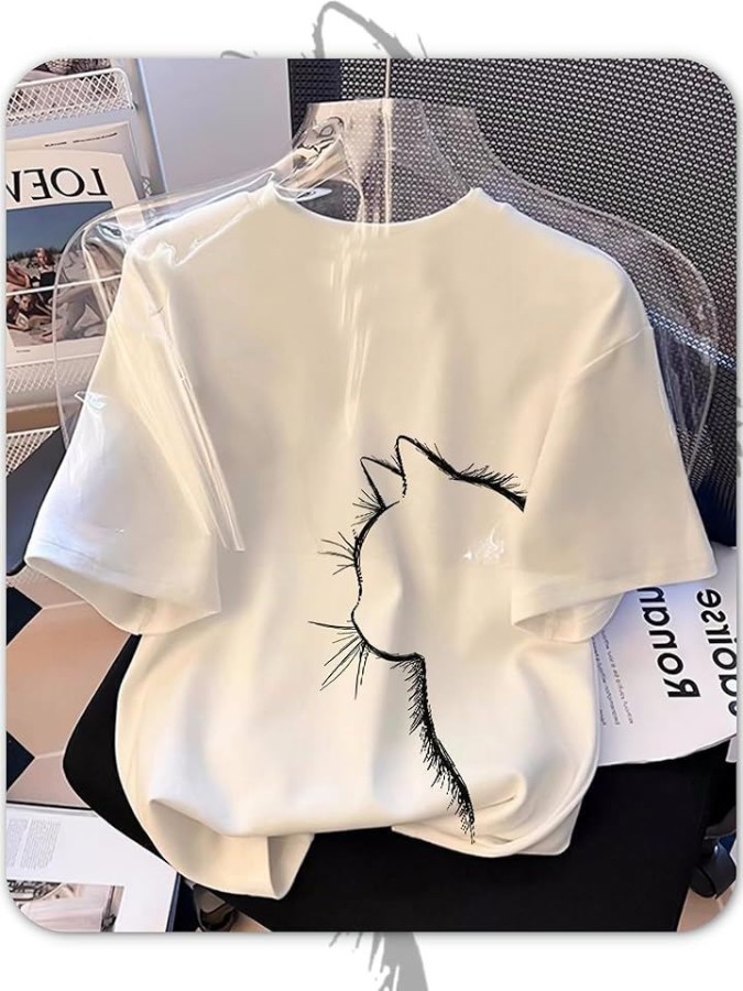 猫シルエットが映える、ゆったりシルエットのレディースTシャツ。