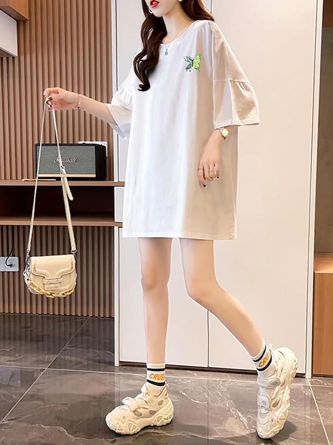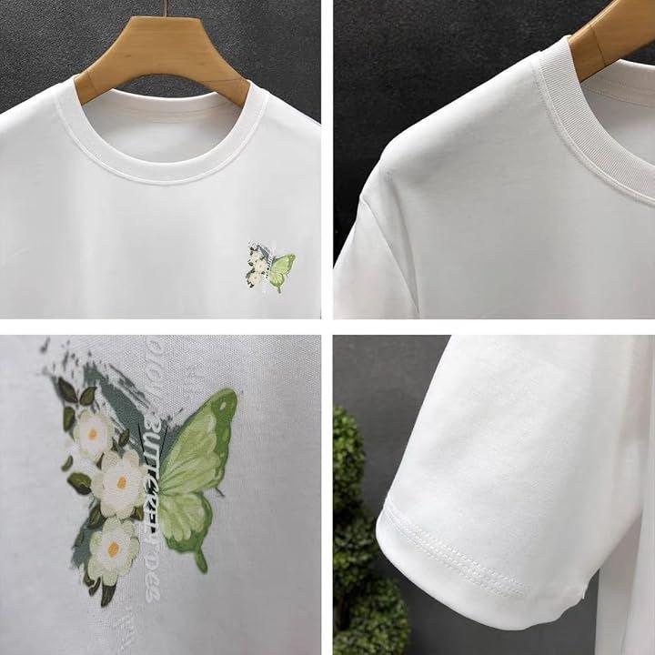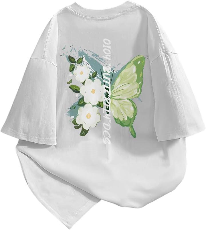 左胸に描かれた蝶と花のモチーフが、コーデに程よいアクセントを加え、シンプルながらもこなれ感を演出します。