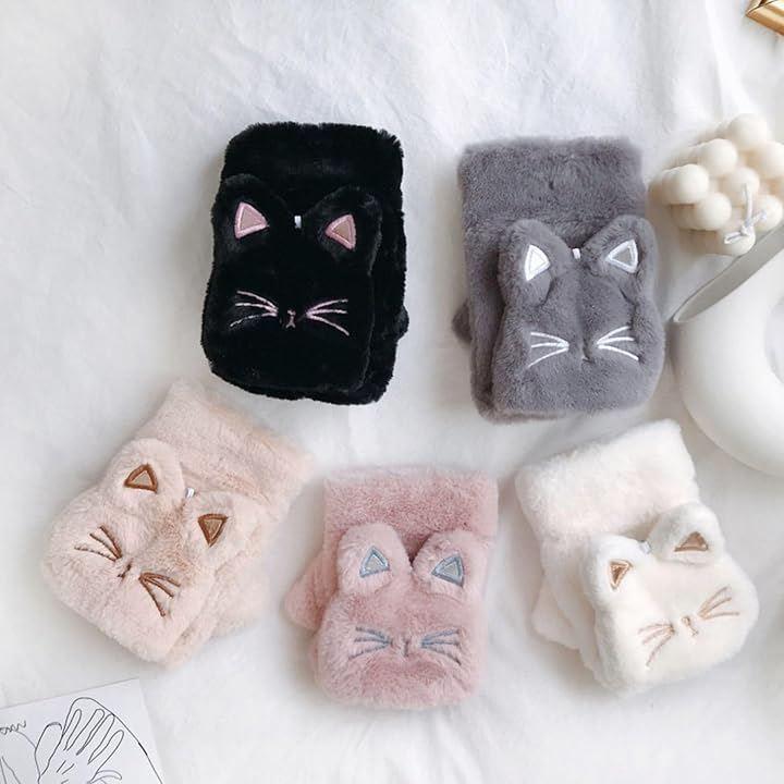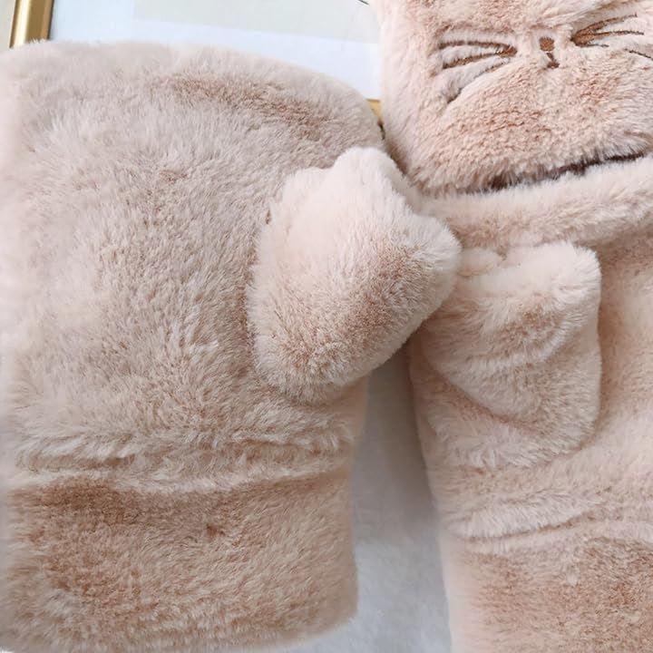 「手袋 寒い日に」オシャレしながら暖かく過ごせます。可愛いネコちゃんに癒されるモコモコの手袋です。