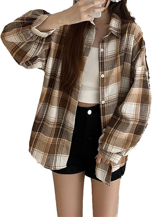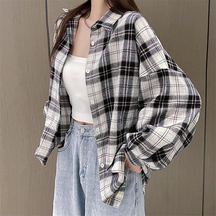 大きめのチェック柄が存在感を引き立て、シンプルなインナーに羽織るだけでスタイルが完成。