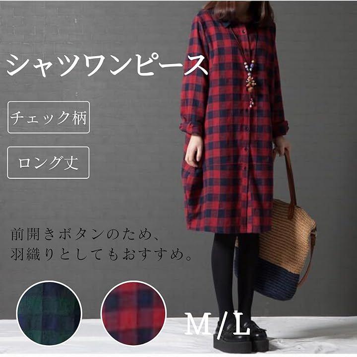 チェック柄のロング丈シャツワンピースで、前開きボタン仕様のため、羽織りとしてもおすすめ。