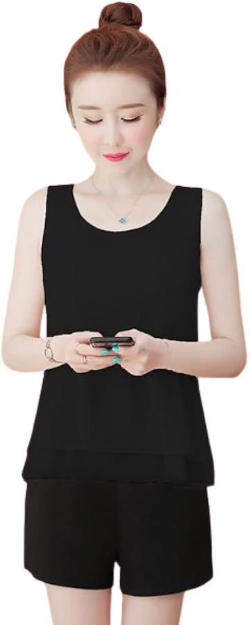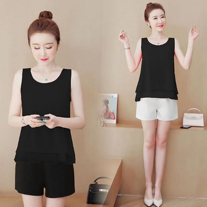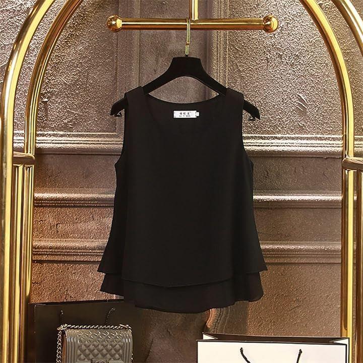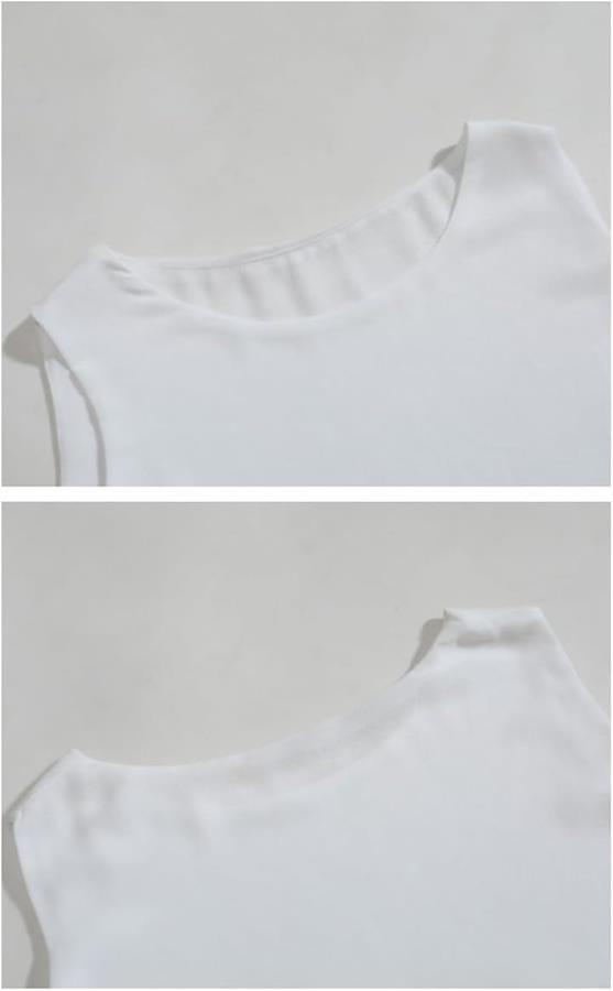 体にフィットしすぎないゆったりとしたシルエットのシフォンタンクトップ。