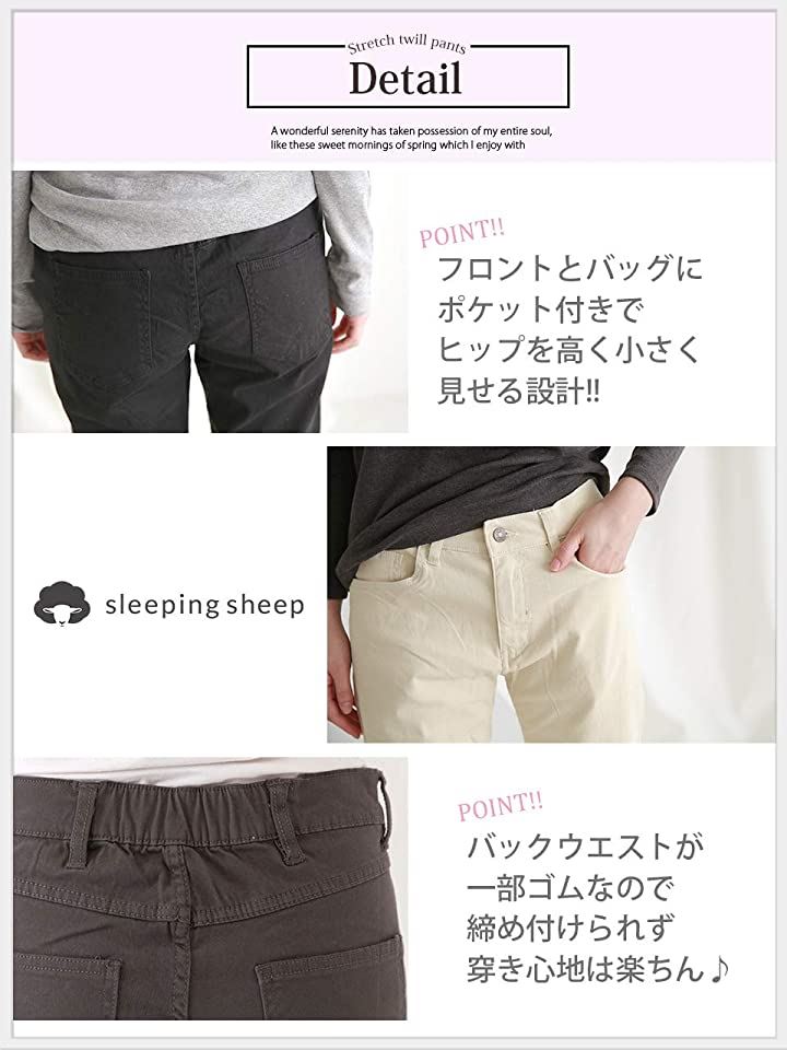 肌触りの良いコットン素材に伸縮性に2%のポリウレタンを配合し しっかりとした生地感で動きに合わせたフィット感とスタイルをキープしてくれるツイルスキニーパンツ。
