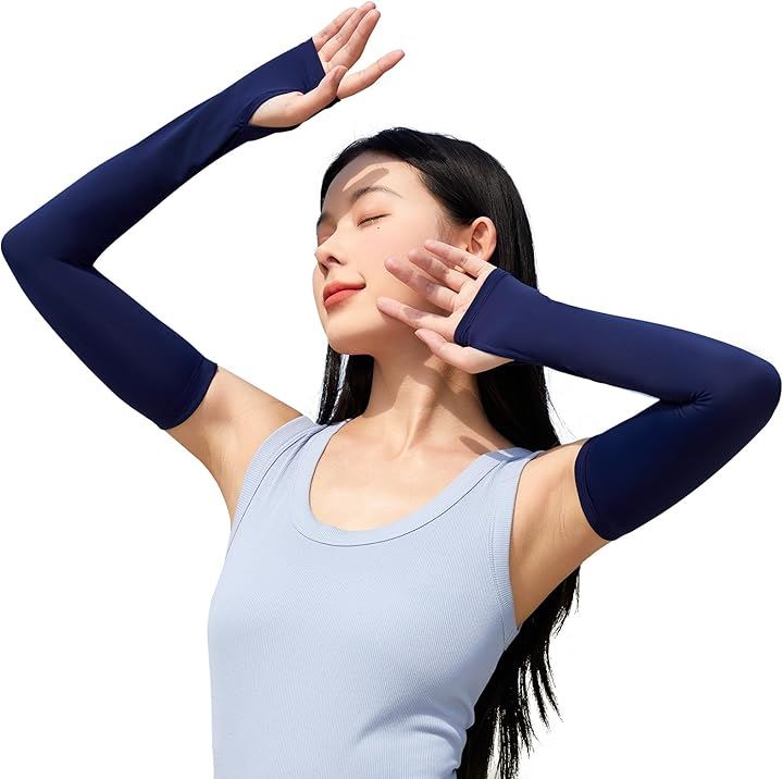 Women's Cooling Arm Sleeves, UV Protection, Long Length, with Thumbholes, UPF 50+, for Summer, Cooling Sensation, Sun Protection, Arm Sleeves for Golf, Cycling, Driving, Gardening, Sports, and Work