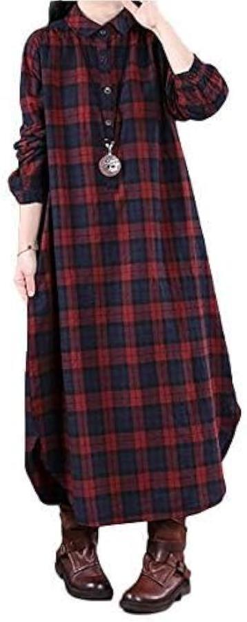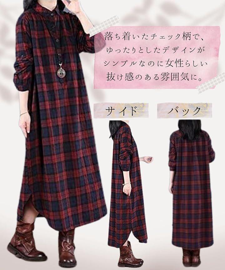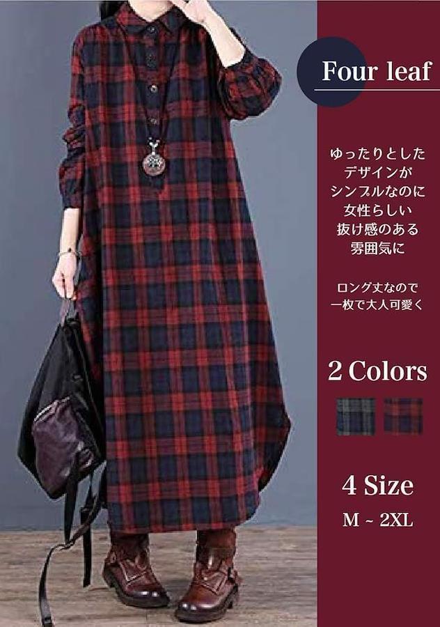 落ち着いたチェック柄で、ゆったりとしたデザインがシンプルなのに女性らしい抜け感のある雰囲気に。