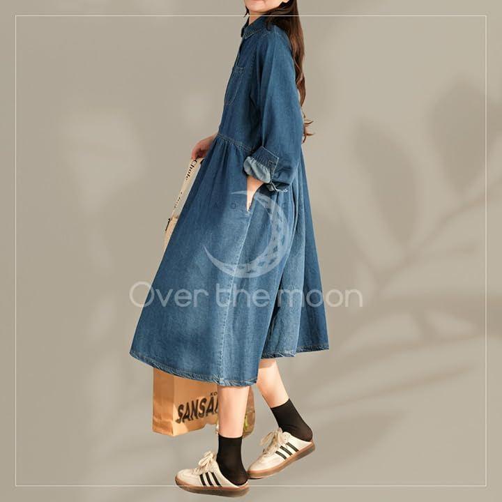 Aラインデニムワンピース ロングシーズン楽しんでいただける襟付きデニムワンピース。