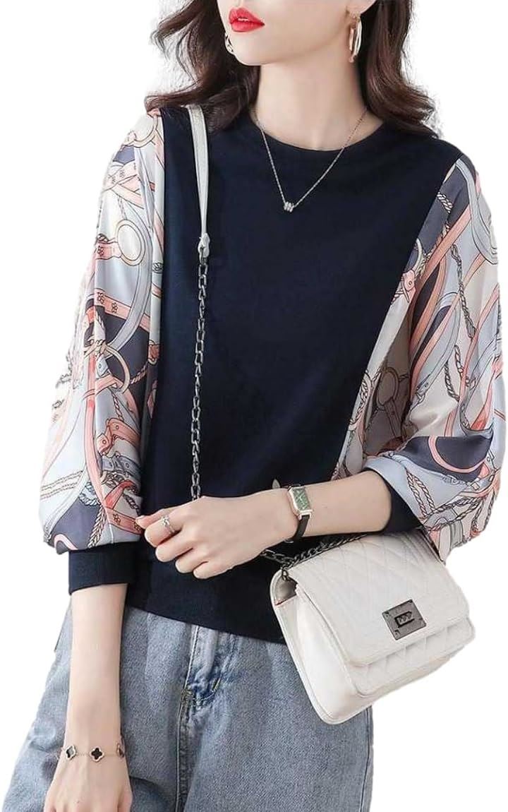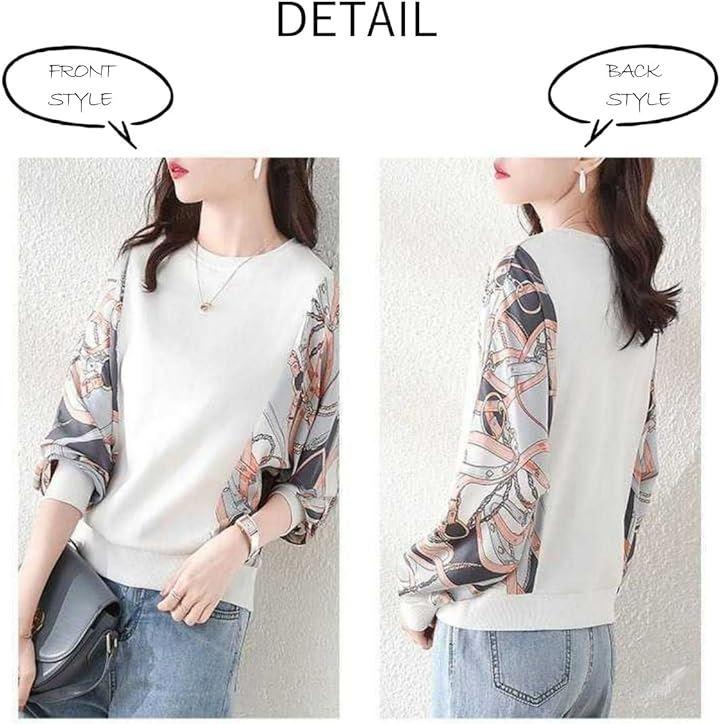 Women's Docking Shirt Blouse, Long Sleeve, Dolman Sleeve, Scarf Pattern, Feminine, Elegant, Slimming, Cute
