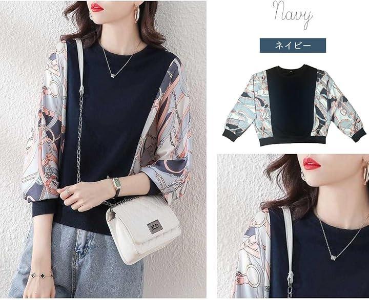 Women's Docking Shirt Blouse, Long Sleeve, Dolman Sleeve, Scarf Pattern, Feminine, Elegant, Slimming, Cute