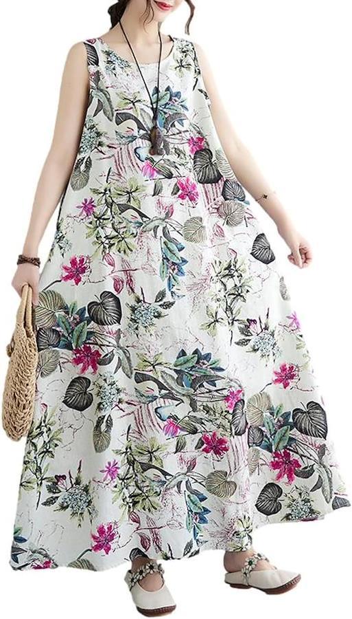 「印象的な着映えが叶う、ロングワンピース」 南国を思わせるボタニカルプリントが眩しい季節に良く映えて。