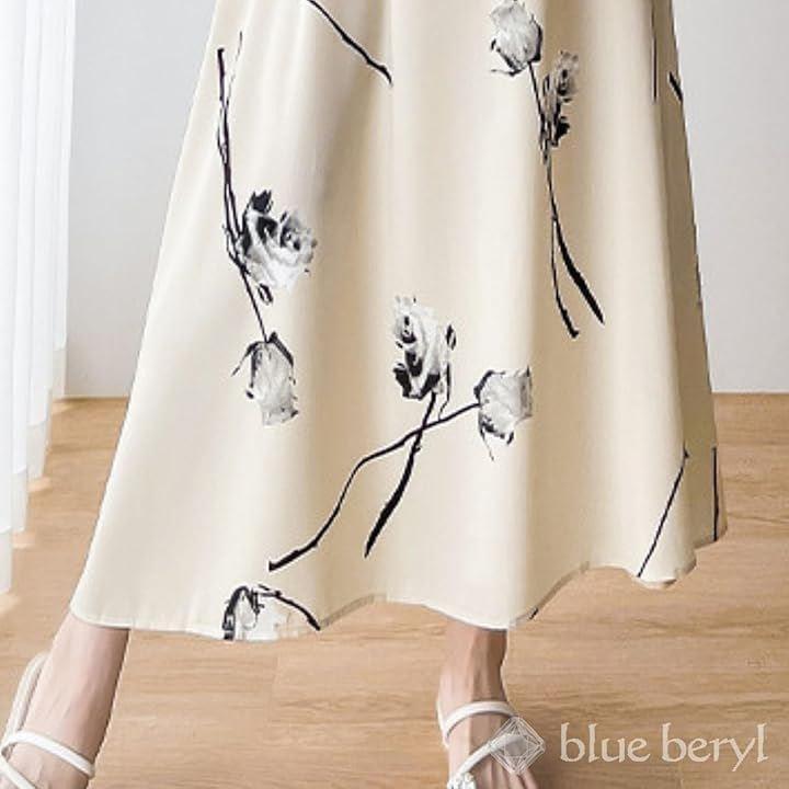 まろやかでクリーミーなアイボリーカラーに 水墨画で描かれたような大胆なばらのフラワープリントが、シックで洗練された印象に。