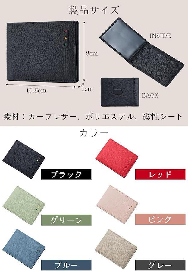 「カラー」ブラック、レッド、グリーン、ピンク、ブルー、ベージュ「素材」レザー「サイズ」横10.5cmx縦8cmx厚さ1cm *カードやお札を入れるとその分広がります。