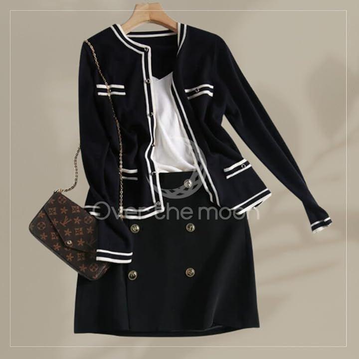 品よくコーデを引き締める パイピングニットジャケットカーディガン