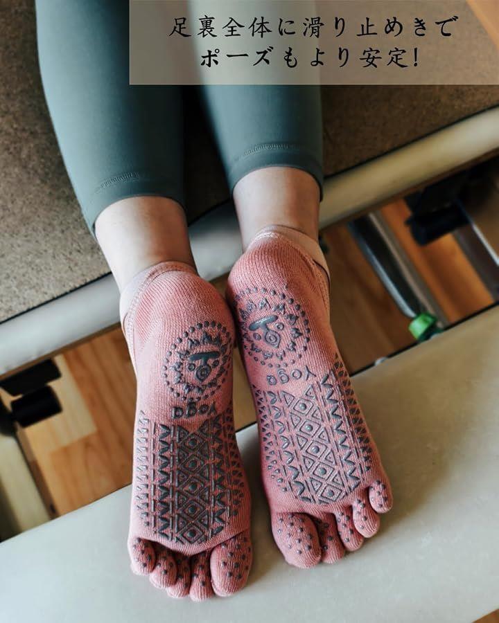 「吸汗性と通気性を両立ヨガソックス」現役インストラクター推奨。 抗菌防臭x通気穴加工で足裏サラサラします。
