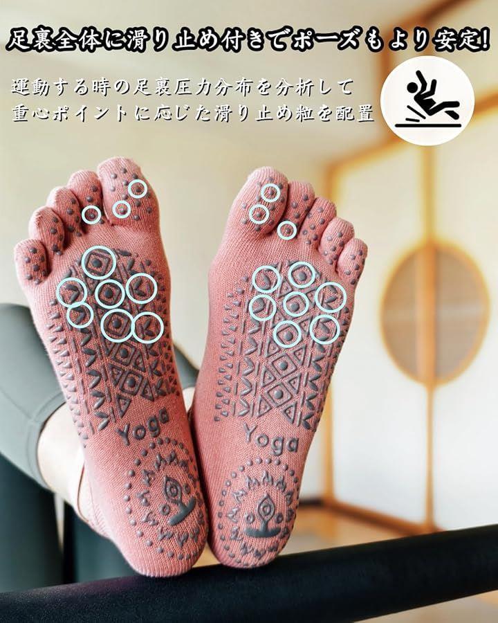 つま先からかかとまで滑り止め効果が持続し、ヨガマット不要で安定ポーズをキープ。