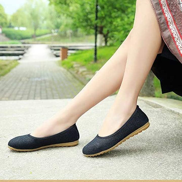 フラットシューズは柔らかくて丈夫な麻素材を使用しているから、軽くて足当たりもよく屈曲性も抜群で、ラクラクな履き心地。