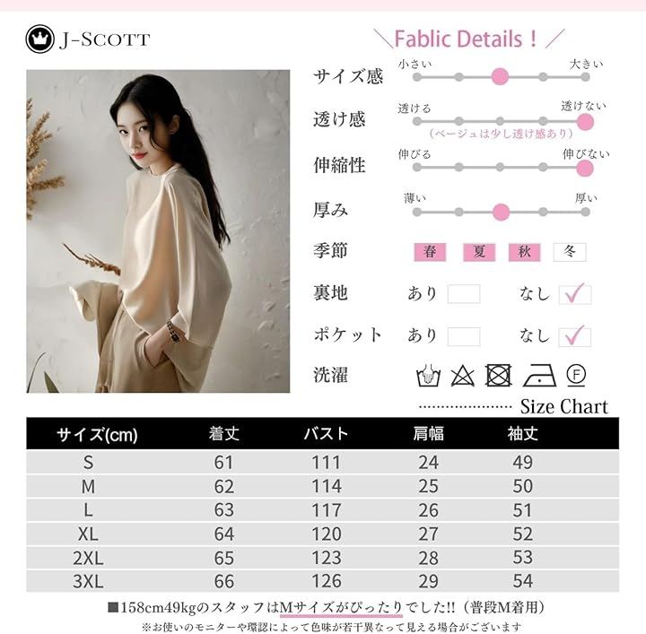 「サイズ」 着丈/バスト/肩幅/袖丈 S : 61/111/24/49 M : 62/114/25/50 L : 63/117/26/51 XL : 64/120/27/52 2XL : 65/123/28/53 3XL : 66/126/29/54