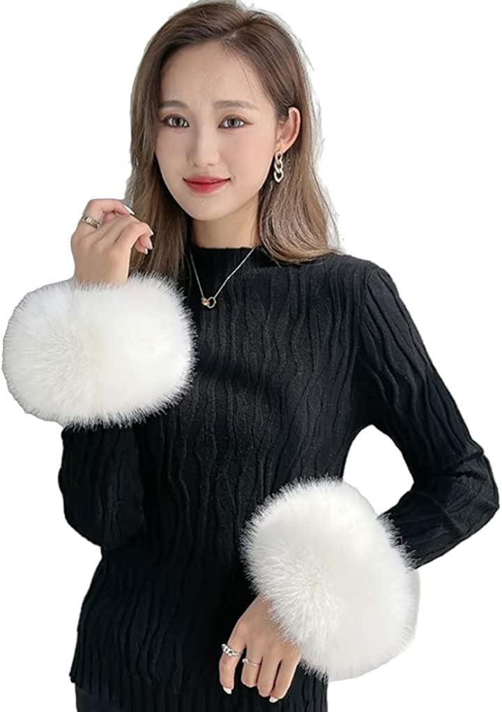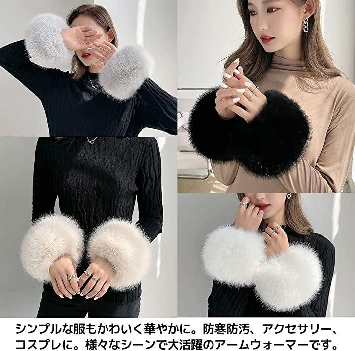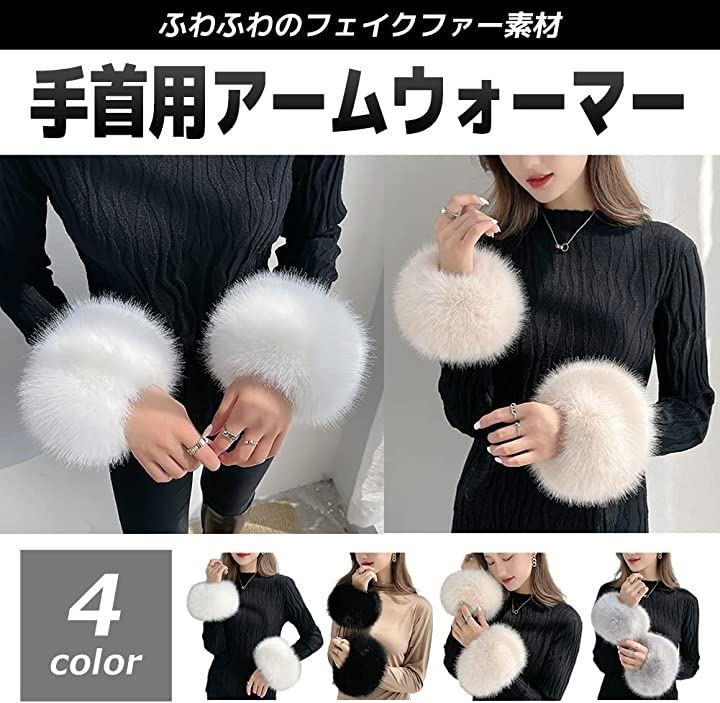 ふわふわのフェイクファー素材で冬のコート、ニットプルオーバー、コスプレにおすすめの手首カフスです。