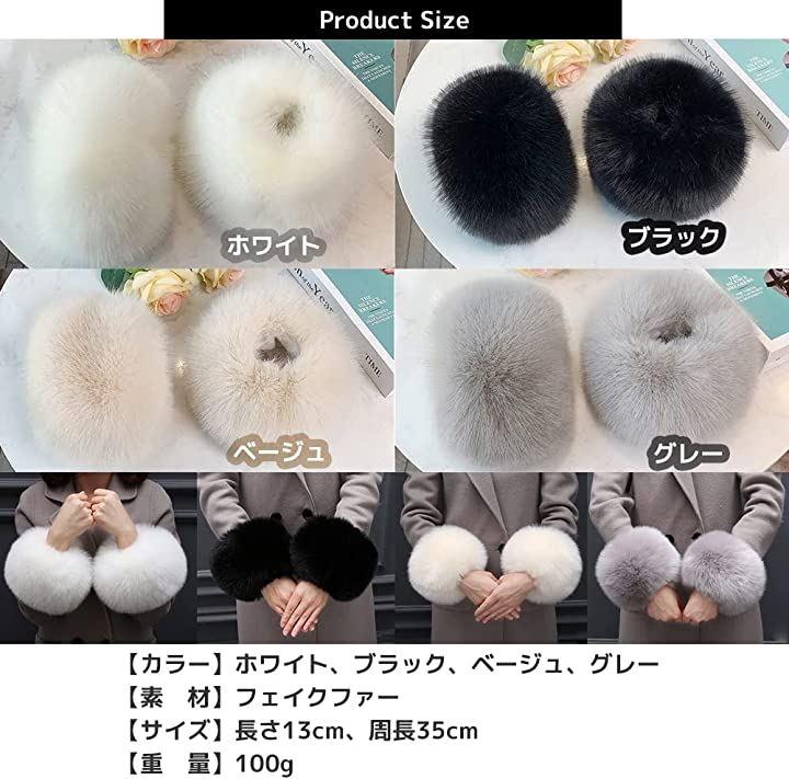 ・「カラー」ホワイト、ブラック、ベージュ、グレー「素材」フェイクファー「サイズ」長さ13cm、周長35cm「重量」100g