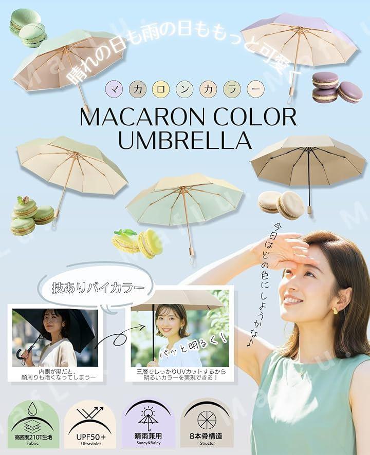 *マカロンカラーが魅力。日差しの強い日も 雨の日だって待ち遠しくなる傘 [1.] 8本骨構造で抜群の安定感 通常の折り畳み傘より多い8本の骨組みは耐久性に優れ、傘全体をしっかり支えます。
